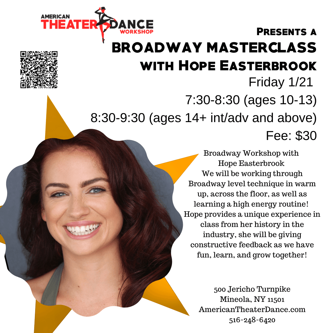 UPCOMING Master Class with Broadway's Hope Easterbrook on January 21, 2022. Register using QR code or CLICK HERE