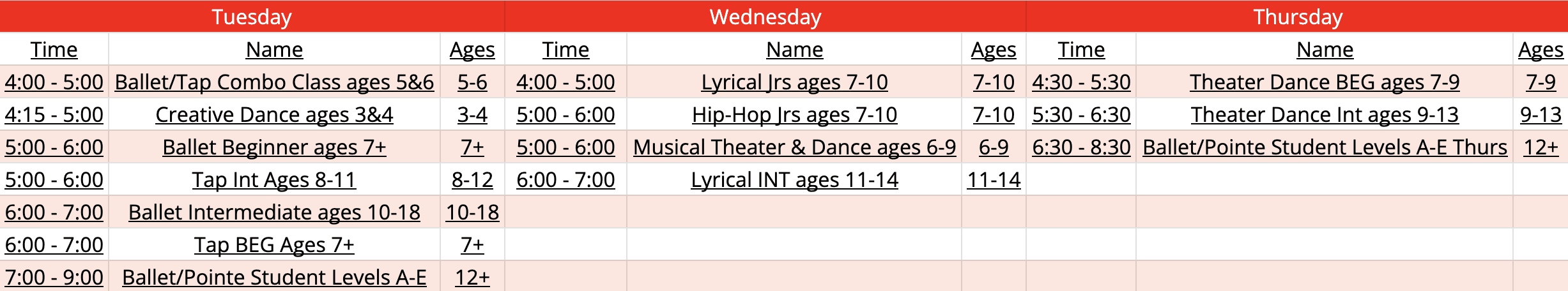 1 hour Classes - 2002 hour ballet/Pointe - 245, including pointe or pre-pointe